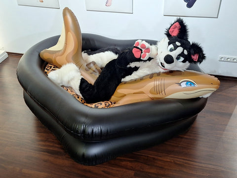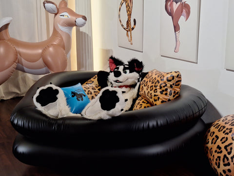 Then you will love out Gothic Playpools. An inflatable playground in cheerful black with a separate red inflatable bottom. Alternatively, there is a clear-transparent ghost pool with a black goth heart bottom, or the white goth pool with a peach/pink bottom. The pool is fully functional as a pool but you can use it as an inflatable playground for your squeaky (or other) fun!